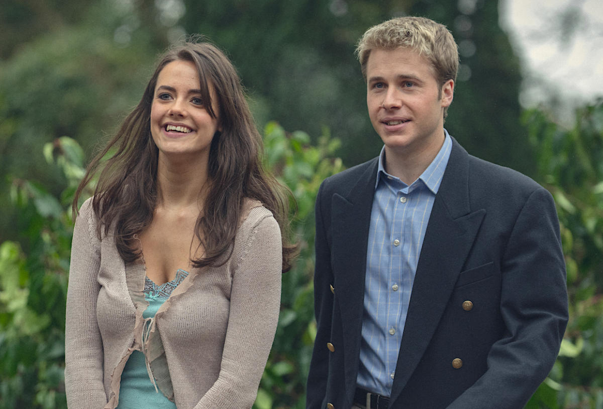 في الحلقة 7، تتاح الفرصة لكيت ميدلتون البالغة من العمر 15 عامًا للقاء ديانا وويليام في حفل خيري مع والدتها كارول (بيت التنين‘s Eve Best) دفعها لإلقاء التحية. بعد سنوات، عندما اختار ويليام جامعة سانت أندروز، لاحظت كارول ذلك، وسجلت كيت هناك أيضًا، حيث أطلق عليها زملاء ويليام لقب “كيت الجميلة”. يبدأ ويليام في رؤية فتاة مجتمع تدعى لولا، لكنه يبقي عينه على كيت، وتتطاير الشرر عندما يتبادلان الملاحظات في دورة تاريخ الفن التي يحضرها كل منهما. لاحظت لولا الشرر أيضًا، مما أدى إلى مواجهة متوترة في المكتبة يتبعها انقسام، وعندما يعود ويليام إلى المنزل في فترة الاستراحة، يقضي الوقت كله متلهفًا لكيت، التي تواعد الآن زميلًا طالبًا يُدعى روبرت فينش.