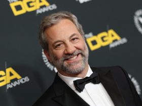 ارتدى تيدي سويمز معطفًا مخططًا باللونين الذهبي والأسود، وارتداه مع قبعة رعاة البقر المهدبة.