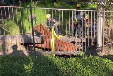 تم إنقاذ حصان من خندق بواسطة رجال الإطفاء والأطباء البيطريين