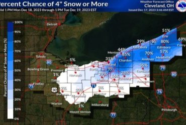 من المتوقع تراكم الثلوج يوم الاثنين في شمال شرق أوهايو
