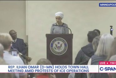 رجل يرش مادة مجهولة على النائبة إلهان عمر ويتم التعامل معه في مجلس مدينة مينيابوليس