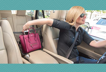 يحافظ حامل حقيبة اليد للسيارة هذا على حقيبتي من الانسكاب، وهو معروض للبيع مقابل 15 دولارًا