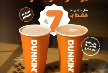 عروض دانكن كافيه على المواكا أو الهوت شوكلت بـ 7 ريال فقط