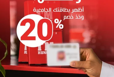 خصم 20 % من مطعم اي ام هنجري للطلاب الجامعيين 19 اكتوبر 2025