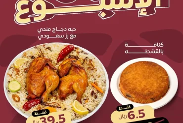 عرض الاسبوع خصم 20٪ من مطعم الناضج على الدجاج المندي والكنافة