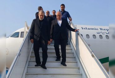 حشود شعبية تستقبل لاريجاني في بيروت بالورود ونثر الأرز
