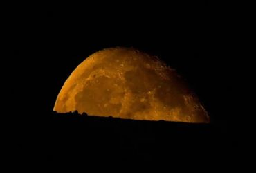 بالصور/ لقطات مذهلة للقمر وهو يطل من خلف جبل الباروك في جبل لبنان