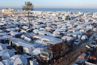 وقال مسعفون إن خمسة أشخاص قتلوا في غارات جوية إسرائيلية على خيام قرب خان يونس
