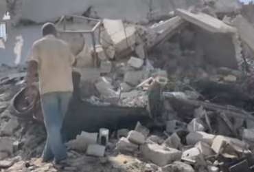أحد العائدين من غزة يضع خيمة عائلية فوق قنبلة إسرائيلية غير منفجرة