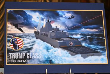 يقول ترامب إن سفينة حربية جديدة من طراز “ترامب” مزودة بمدافع كهرومغناطيسية وأشعة ليزر وصواريخ تفوق سرعتها سرعة الصوت ستتم إضافتها إلى “الأسطول الذهبي”