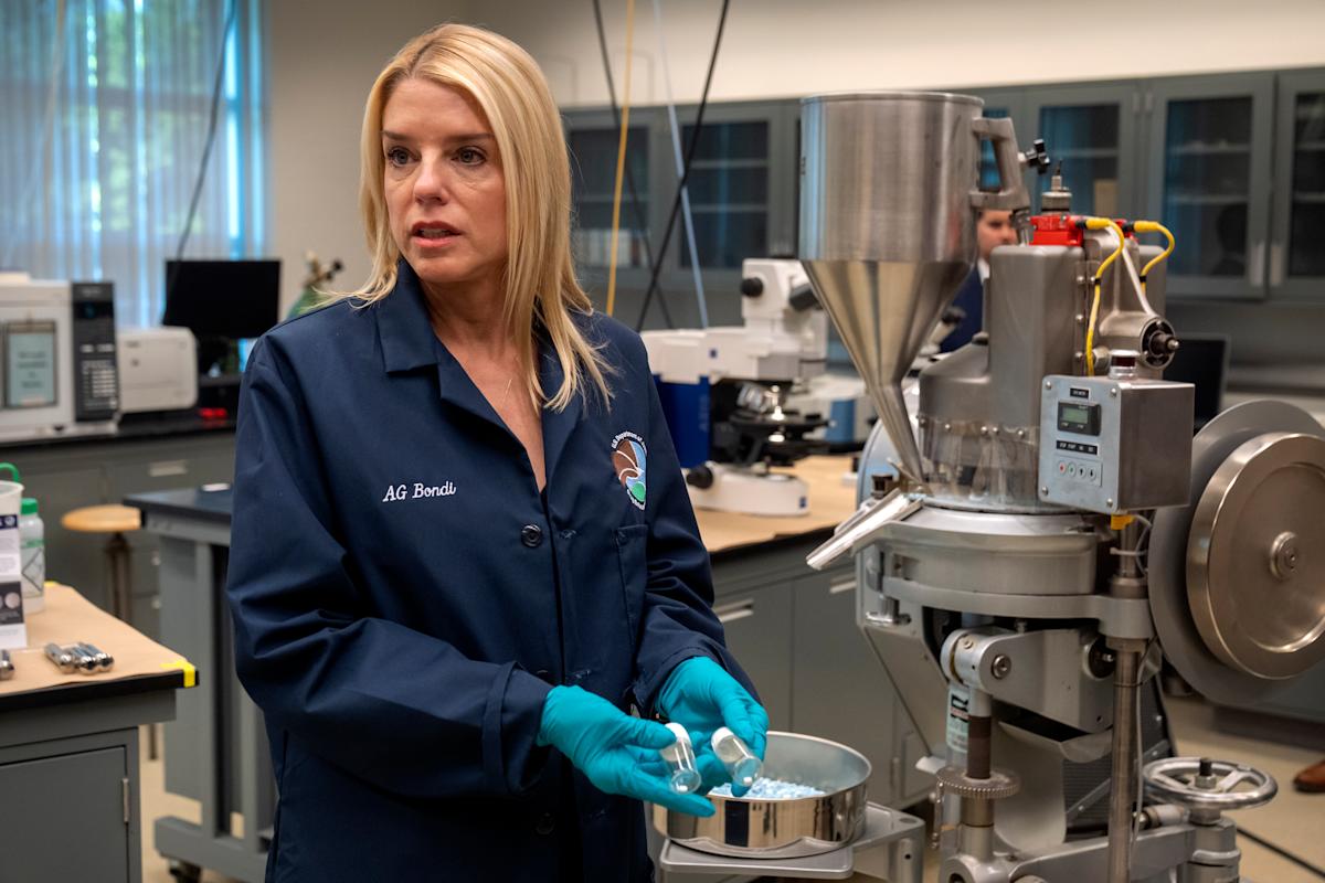 سافر المدعي العام بام بوندي إلى مختبر إدارة مكافحة المخدرات يوم الثلاثاء للقاء الكيميائيين الذين مكلفون بتحديد التكتيكات المتطورة التي تستخدمها الكارتلات لتصنيع الأدوية التي تتدفق عبر الحدود الجنوبية.