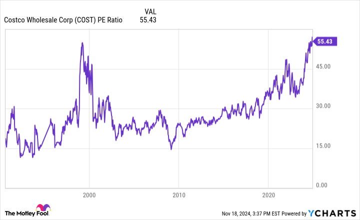 شراء أسهم كوستكو بالجملة (ناسداك: التكلفة) عند نسبة سعر إلى ربح أقل لا ممكن الآن. حتى كتابة هذه السطور، يتم تداول أسهم كوستكو بمعدل 55 ضعف أرباحها، وهي المرة الثانية فقط في تاريخها التي تتجاوز فيها نسبة السعر إلى الربحية 50.