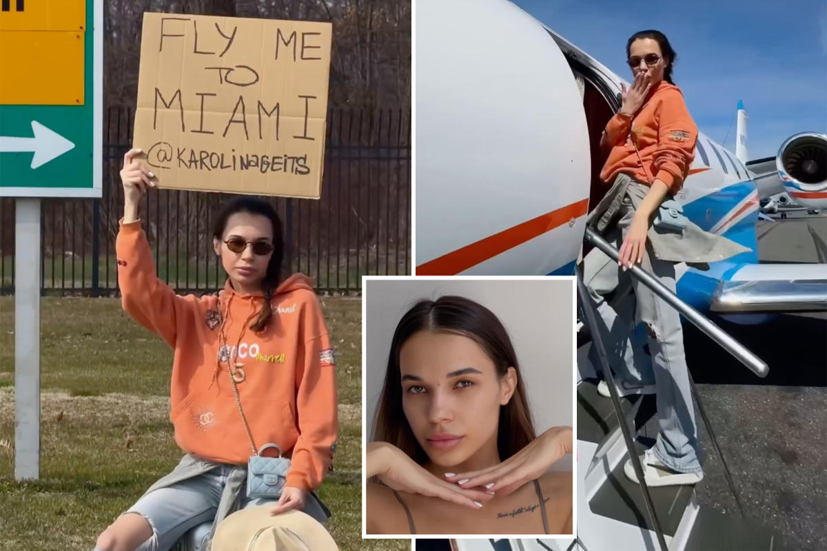 في الأول من مارس، تم نقل عارضة الأزياء البالغة من العمر 29 عامًا وشخصية مؤثرة في مجال التجميل بعيدًا على متن طائرة خاصة لشخص غريب إلى ولاية صن شاين بعد أن كانت تحمل لافتة من الورق المقوى تحمل طلبًا وقحًا، “حلق بي إلى ميامي”، خارج مطار تيتربورو في نيوجيرسي، وفقًا لمقطع فيديو مذهل نشرته على وسائل التواصل الاجتماعي.