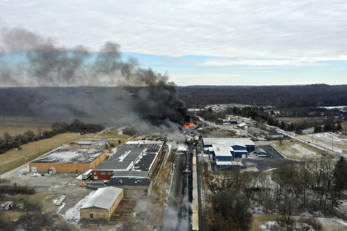 وشمل خروج قطار الشحن عن مساره في قرية أوهايو بالقرب من خط ولاية بنسلفانيا 11 سيارة تنقل مواد خطرة. تم إجلاء سكان المنطقة، وبعد أيام، خشي المسؤولون من احتمال حدوث انفجار خارج عن السيطرة، مما أدى إلى إطلاق وإحراق كلوريد الفينيل السام من خمس عربات للسكك الحديدية، مما أدى إلى تصاعد ألسنة اللهب والدخان الأسود في السماء.