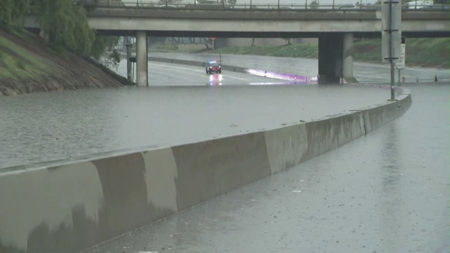 أظهر مقطع فيديو تمت مشاركته على تطبيق Citizen الطريق السريع المزدحم عادةً مغمورًا تحت عدة أقدام من المياه بالقرب من شارع بنروز في شمال شرق وادي سان فرناندو بدءًا من الظهر تقريبًا.