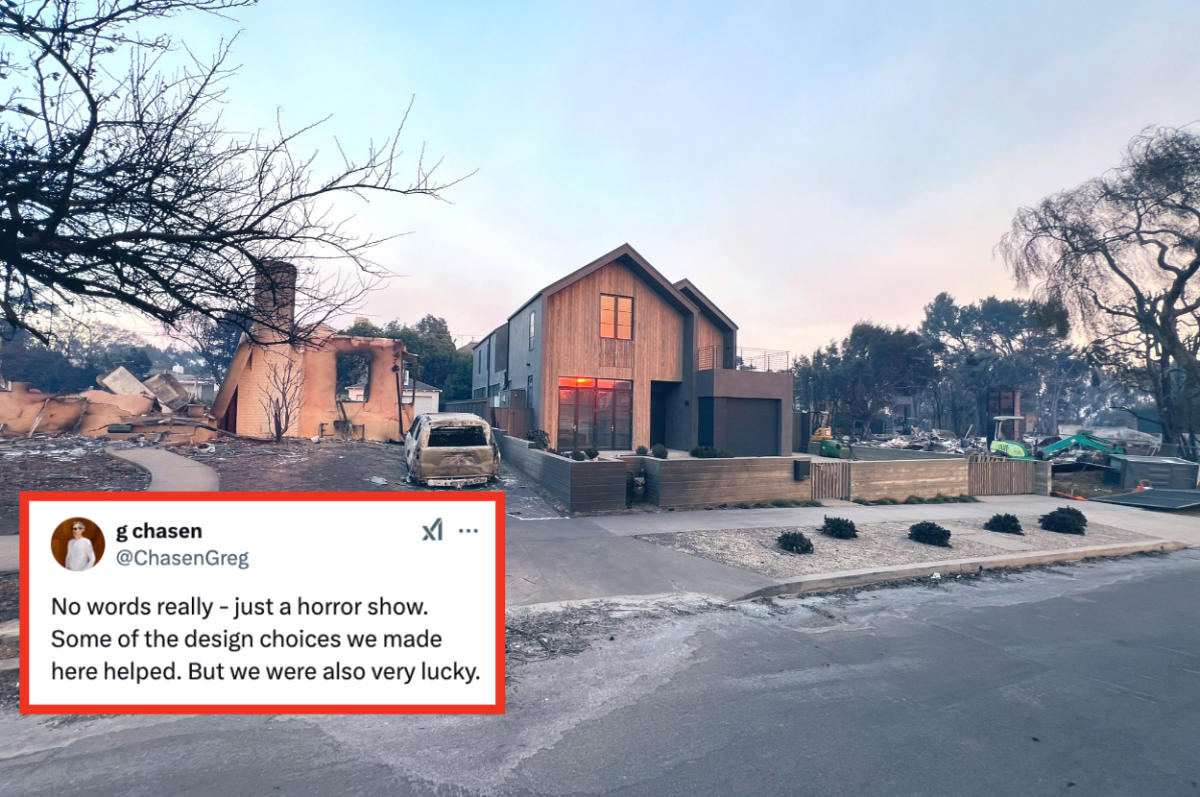 نجا أحد المنازل في أحد شوارع الحي، وانتشر المهندس المعماري الذي صممه، جريج تشيسن، على نطاق واسع لشرح سبب بقاءه على قيد الحياة.
