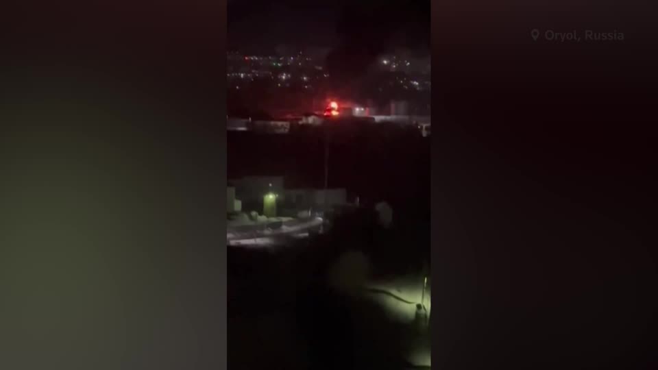 القصة: أظهر مقطع فيديو شاهد عيان صدر يوم الثلاثاء (12 مارس) أعمدة من الدخان الداكن تتصاعد من حريق في منشأة للوقود والطاقة في أوريول.