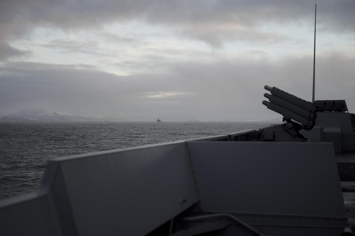 على متن الفرقاطة الفرنسية نورماندي، انطلق الطاقم المكون من 146 فردًا إلى محطات القتال عندما انحرفت طائرة مجهولة جاءت من اتجاه روسيا بالقرب من مكانها الأسبوع الماضي، في المجال الجوي الدولي شمال منطقة دورية الاستجابة الشمالية للسفينة الحربية في مياه القطب الشمالي.