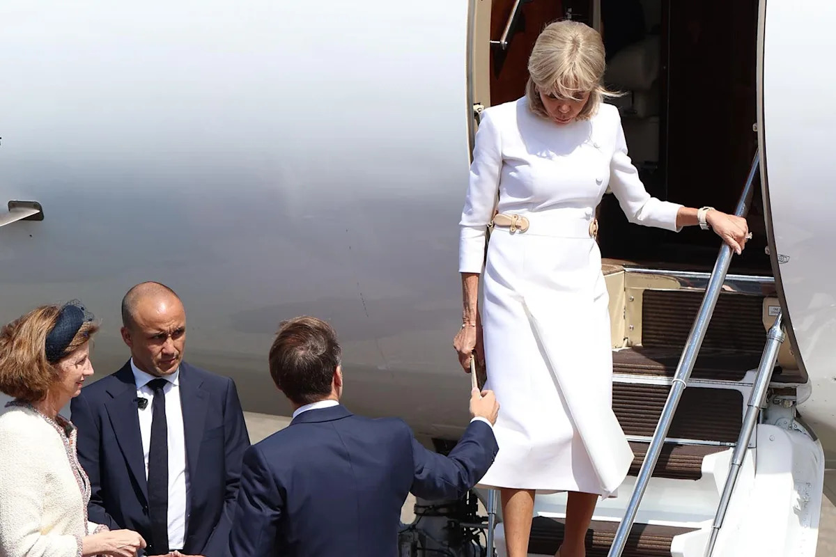 في أعقاب عودتهم الفيروسية في شهر مايو ، كان الرئيس الفرنسي إيمانويل ماكرون وزوجته ، بريجيت ، يتبادلون آخرون محرجين في الطائرات يوم الثلاثاء ، 8 يوليو ، قبل زيارتهما الرسمية للدولة مع العائلة المالكة البريطانية.