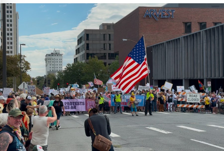 ليتل روك، أركنساس – خرج الآلاف في مسيرة احتجاجية بعنوان “لا ملوك” في ليتل روك صباح يوم السبت.