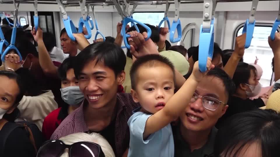 القصة: :: حشد كبير من الناس يأملون أن يكونوا من بين أول الركاب على أول خط مترو في فيتنام بعد سنوات من التأخير