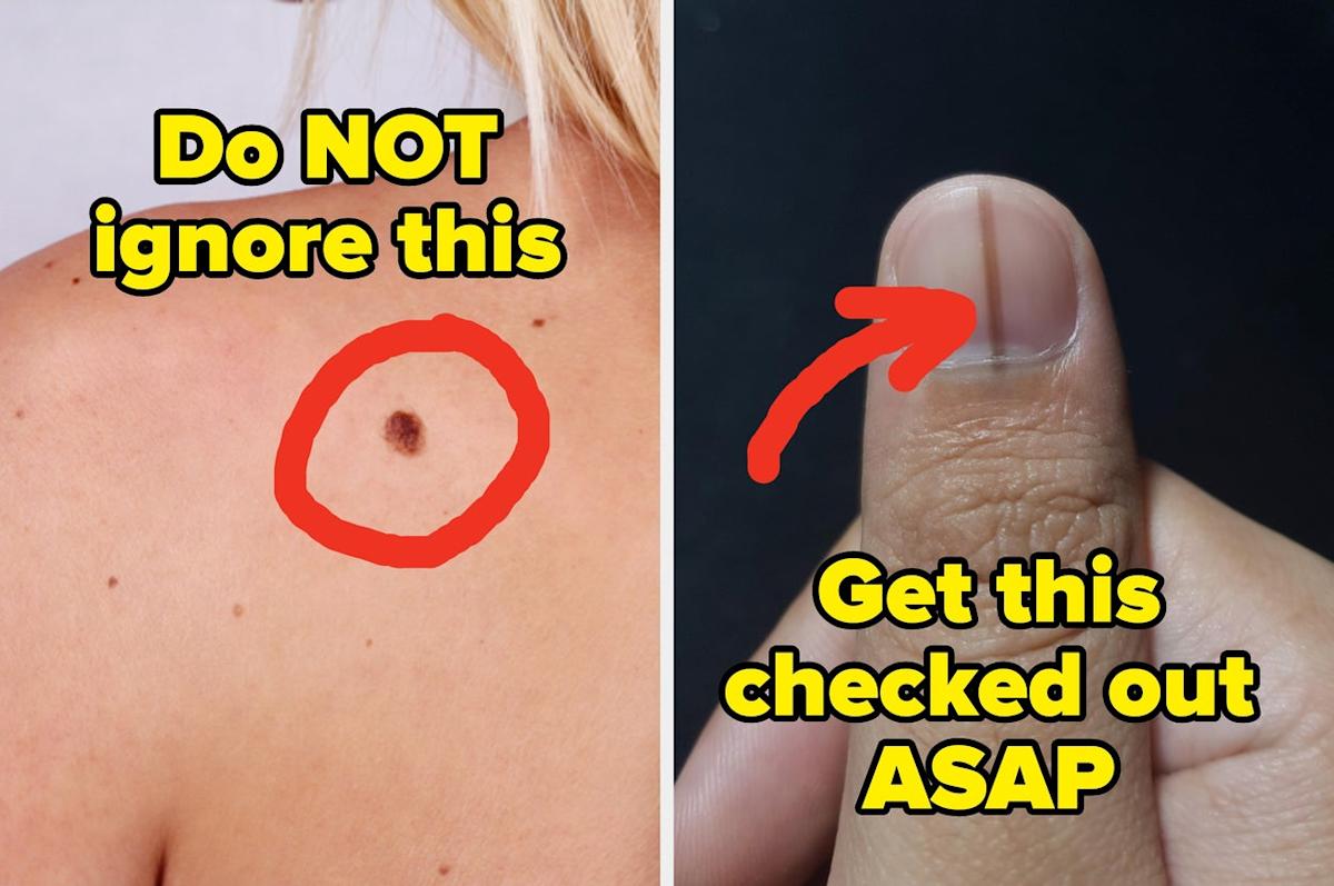 4. “إذا كان هناك أي شيء يتعلق بأظافر إصبعك (أو إصبع قدمك) يختلف عن غالبية الناس، فلا تفترض أنه “طبيعي بالنسبة لك”. أظافر الأصابع المتجعدة، أو على شكل قبة شديدة، أو مقعرة، أو مغطاة بخطوط، أو تظهر عليها بقع داكنة (التي ليست نتيجة واضحة للإصابة، والتي تظهر بعد ذلك علامات واضحة للشفاء) *يمكن* أن تكون علامات على أشياء مختلفة تتراوح من نقص التغذية الطفيف ولكن المستمر، إلى أمراض القلب/الرئة، إلى السرطان.