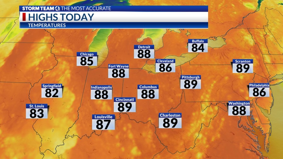 من المتوقع أن تنخفض درجات الحرارة إلى حد ما في نهاية الأسبوع، مع انخفاض درجات الحرارة إلى أدنى مستوى 70 درجة يوم الجمعة. مرة أخرى، مجرد النظر إلى فرصة عاصفة معزولة بعد الظهر.
