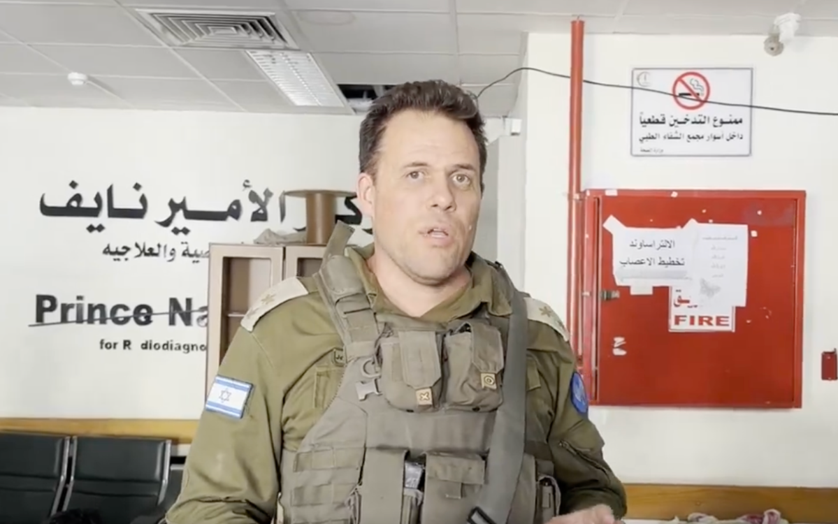 وفي مقطع فيديو منشور على الإنترنت، جيش الدفاع الإسرائيلي يقدم المتحدث باسم المستشفى جوناثان كونريكوس شرحًا تفصيليًا داخل ما يسميه “”المستشفى””التصوير بالرنين المغناطيسي المركز”، والذي يسمى رسميًا مركز الأمير نايف للأشعة التشخيصية والعلاجية.