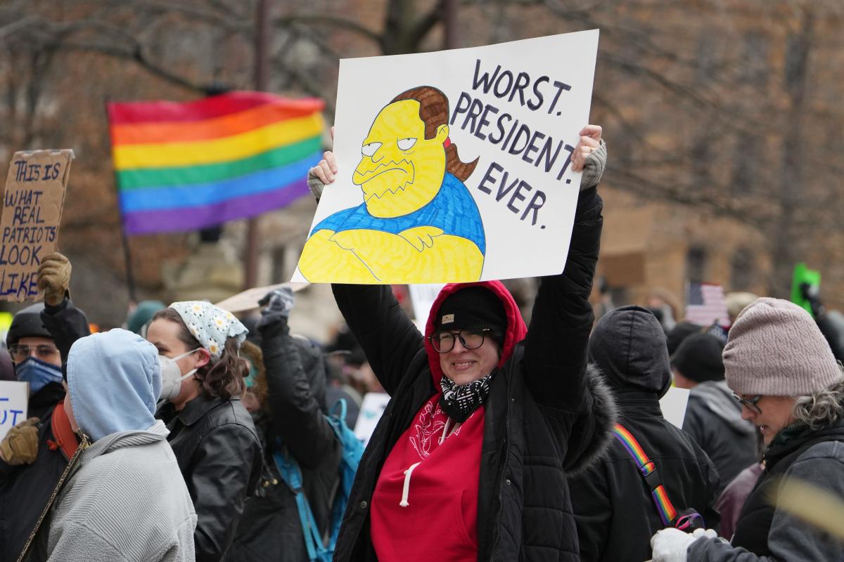 مسيرة مناهضة دونالد ترامب ومتظاهري المسك المناهضين إلون في ولاية أوهايو وفي شارع ن.