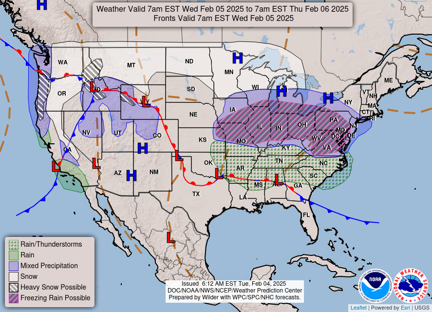 العاصفة الشتوية يمكن أن تجلب الأمطار المتجمدة والتجميد إلى إنديانا في 5 فبراير 2025 ، وفقًا لخدمة الطقس الوطنية.