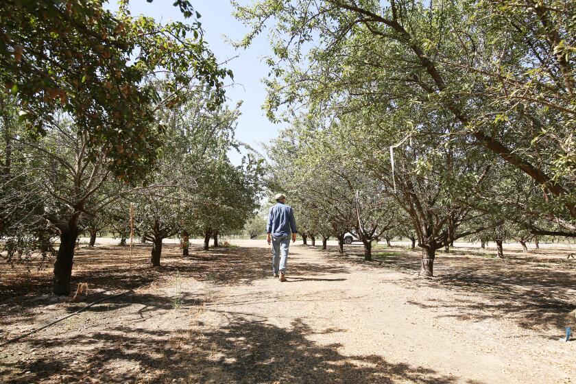اللوز ينضج على شجرة في 9 أبريل 2025 ، في سيريس ، كاليفورنيا. (توماس أوفيل/للأوقات)