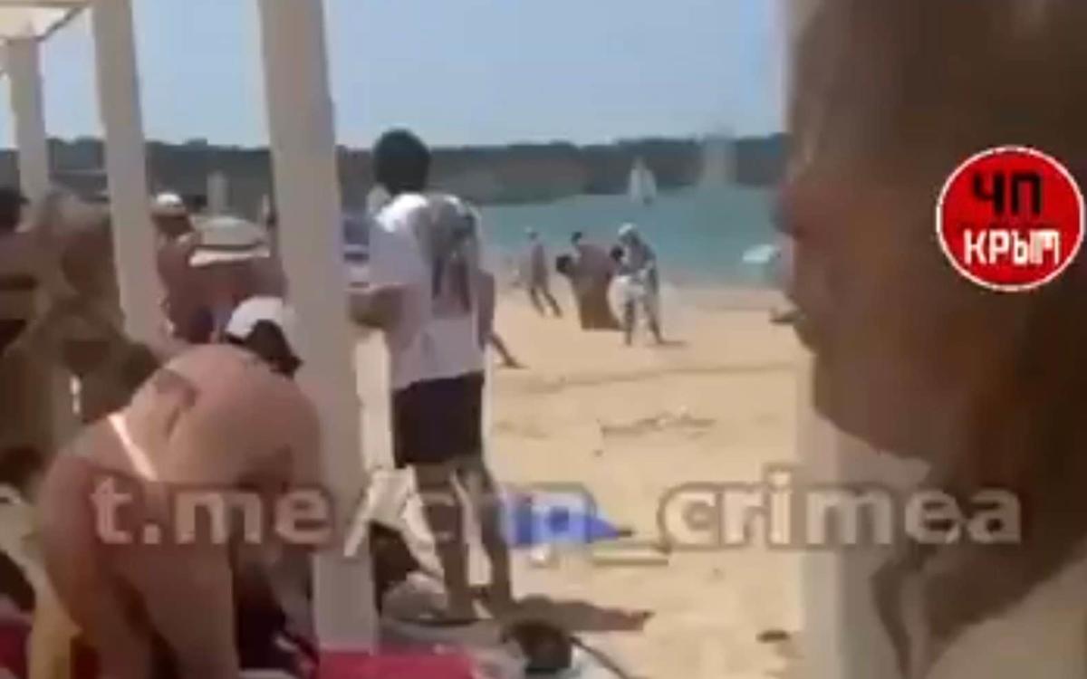 يُظهر مقطع فيديو التقطه سائح على الشاطئ صاروخًا يظهر فوق مدينة سيفاستوبول القريبة ثم ينفجر. وتصطدم الشظايا بالرمال في سلسلة من الضربات والانفجارات، ويصرخ السياح ويهربون.
