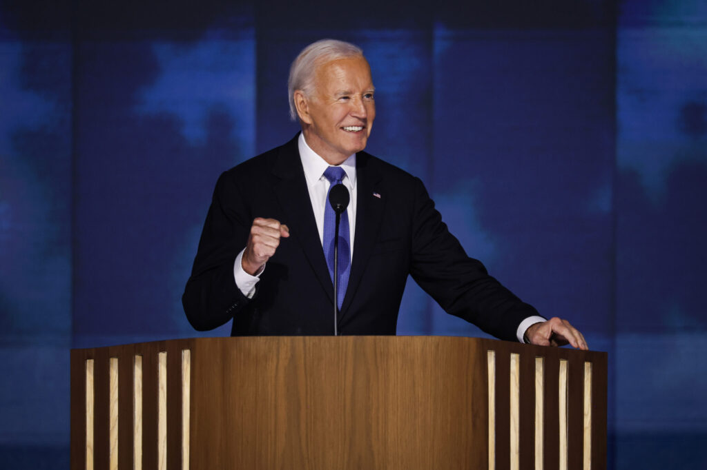 الرئيس جو بايدن يتحدث على خشبة المسرح خلال اليوم الأول من المؤتمر الوطني الديمقراطي في المركز المتحد في 19 أغسطس 2024 في شيكاغو، إلينوي. (تصوير تشيب سوموديفيلا / غيتي إيماجز)