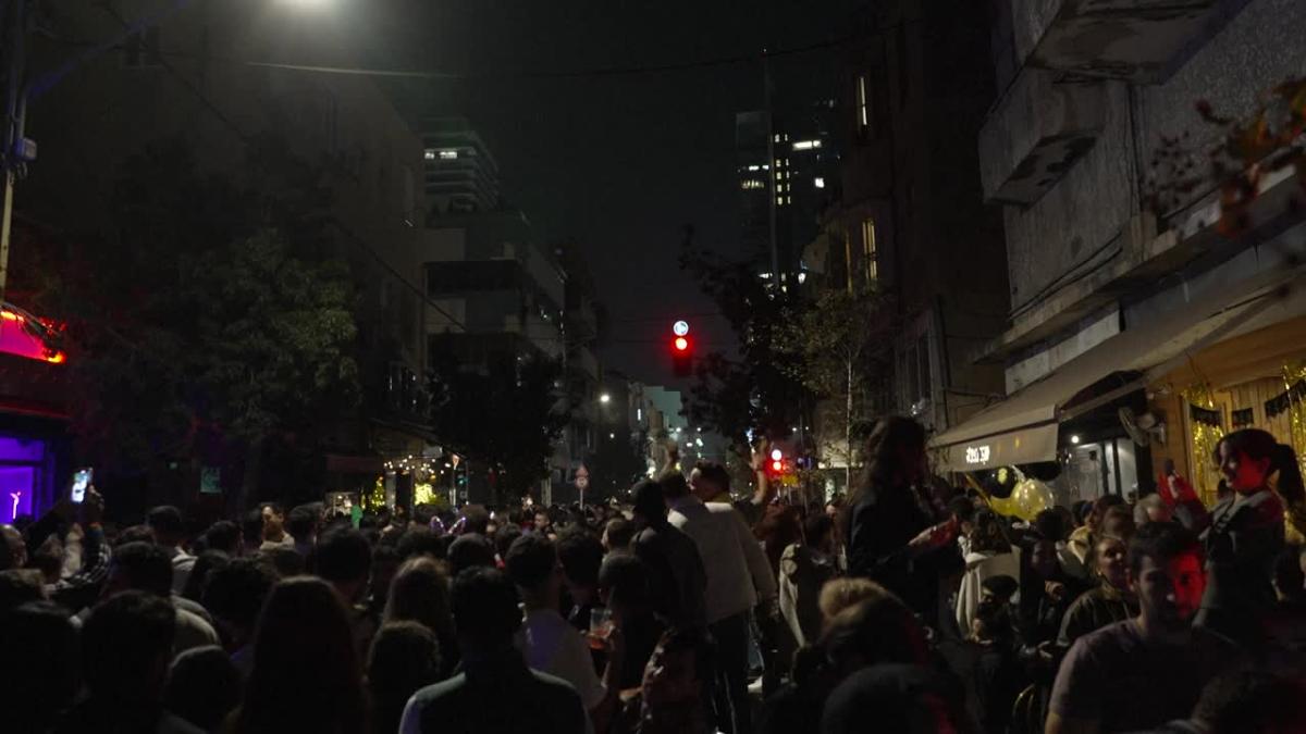 بعد ثوانٍ من حلول العام الجديد في أحد شوارع تل أبيب النابضة بالحياة، وجد بعض الشباب الإسرائيليين أنفسهم يركضون بحثًا عن غطاء، بينما واصل آخرون الاحتفال بلا مبالاة بينما اعترضت أنظمة الدفاع الصاروخي وابلًا من الصواريخ فوق رؤوسهم.
