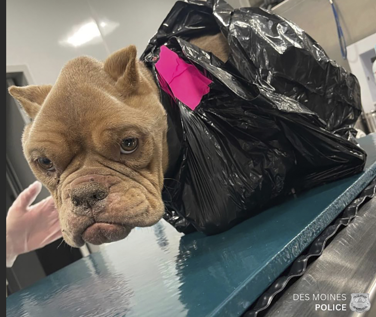 تبحث الشرطة عن الشخص الذي تخلص من كلب بلدغ هزيل داخل كيس قمامة في ولاية أيوا