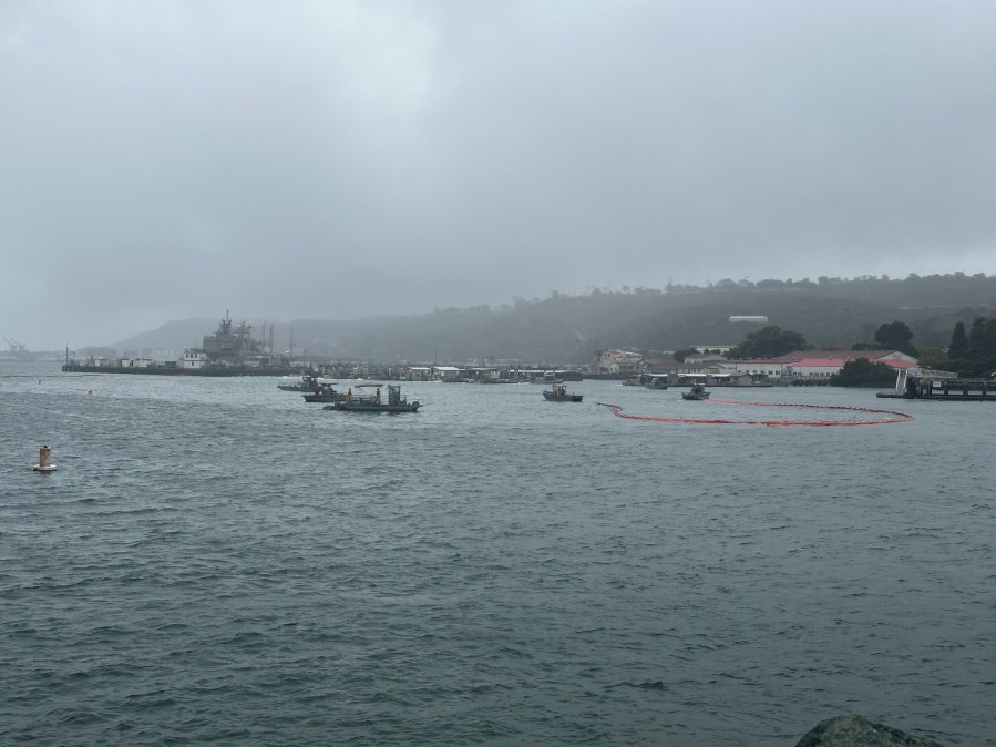 لوحظ أن النفط يتسرب إلى مياه خليج سان دييغو بينما حاول الطواقم استعادة بقايا الطائرة.