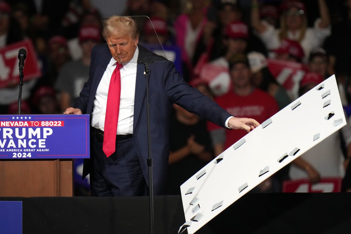 بعد السخرية من نائبة الرئيس كامالا هاريس بسبب استخدامها لجهاز الملقن، توقف تجمع دونالد ترامب في رينو بولاية نيفادا، حيث اضطر إلى إصلاح وقوفه على المسرح بعد سقوط لافتة انتخابية عليه.