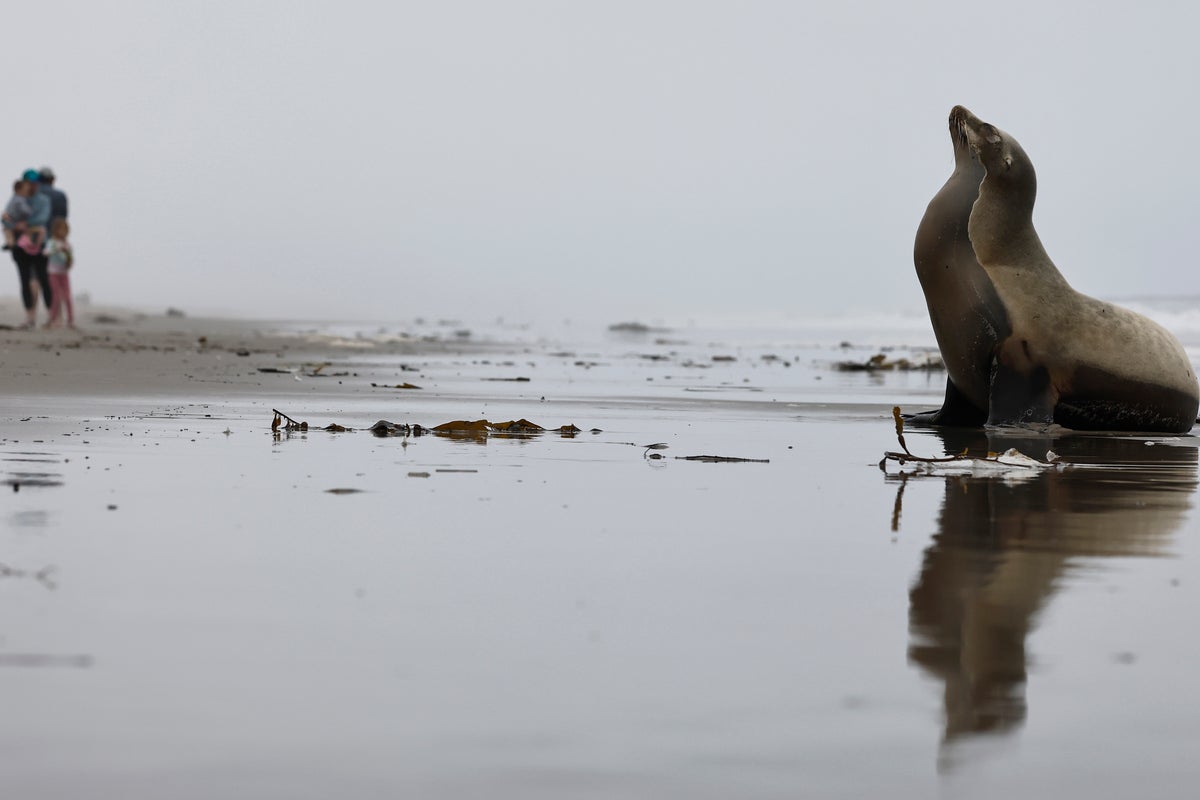 يجب أن يبقى رواد الشاطئ على الأقل 50 ياردة من الحيوانات المتأثرة ، ويبلغون عن الثدييات البحرية التي تقطعت بها السبل إلى الخط الساخن لشبكة الثدييات البحرية في الساحل الغربي في (866) 767-6114.