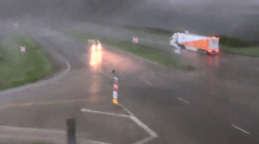 التقطت كاميرات الطرق السريعة لحظة اجتياح إعصار وسط ولاية أيوا يوم الثلاثاء 21 مايو.