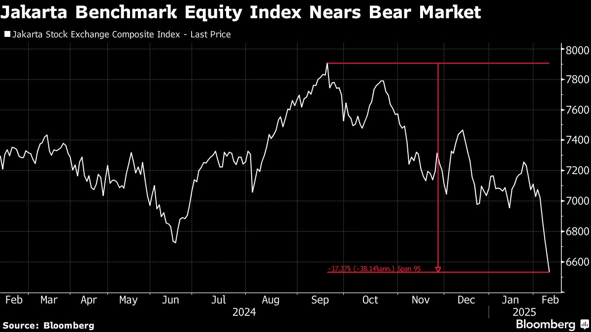 في يوم الثلاثاء ، انخفض مؤشر Jakarta Composite المؤشر إلى أدنى مستوى مدته ثلاث سنوات ، حيث تمتد خسائر من قمة سبتمبر إلى حوالي 17 ٪. تم تداول بورصة تايلاند مؤشر تايلاند على مستوى 2020 منخفض الأسبوع الماضي وحوالي 15 ٪ أقل من أعلى مستوياته في أكتوبر. دخل مؤشر البورصة الفلبيني في سوق الدب الشهر الماضي.