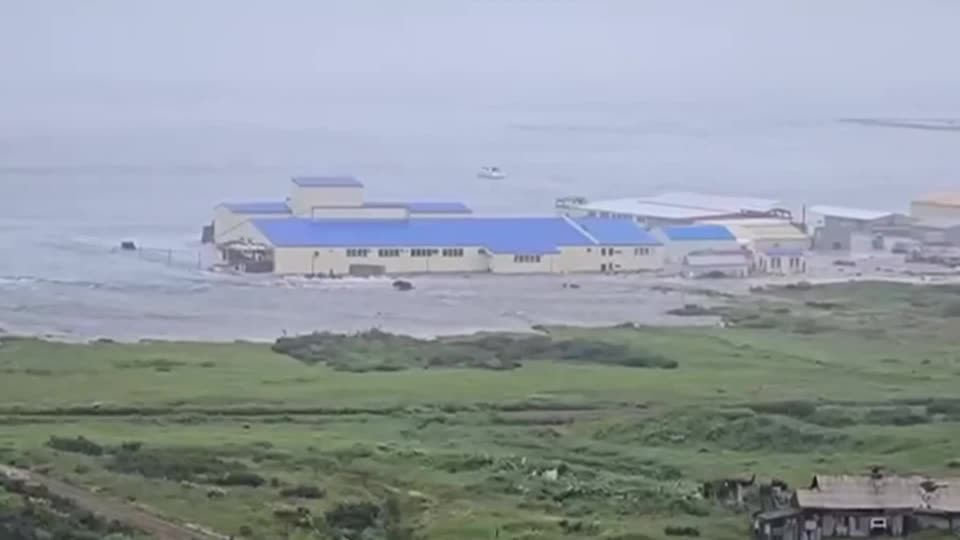 أظهرت مقاطع الفيديو المباني وغيرها من الحطام في بلدة سيفيرو كوريلسك التي يتم غسلها في الداخل من قبل الأمواج القوية والخط الساحلي بأكمله.