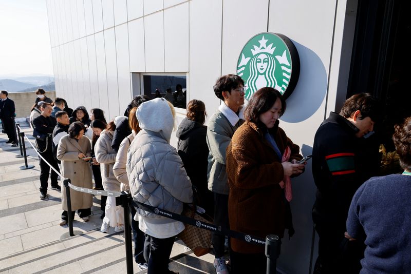 وحضر المئات يوم الجمعة لافتتاح أحدث متجر لسلسلة المقاهي الأمريكية في مرصد بالقرب من مدينة جيمبو، على بعد حوالي 50 كيلومترا شمال غربي سيول وعلى مقربة من المنطقة المنزوعة السلاح التي تفصل بين الكوريتين.