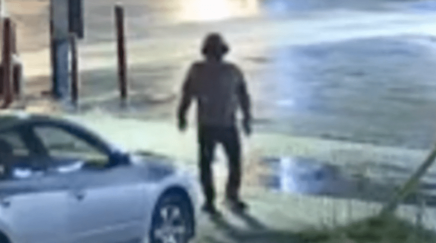 نشرت الشرطة صورة مشوشة مأخوذة من لقطات كاميرات المراقبة لرجل يعتقد أنه مسؤول عن اعتداء جنسي عنيف على امرأة كانت تجلس في سيارتها خارج مطعم في باسادينا يوم السبت.