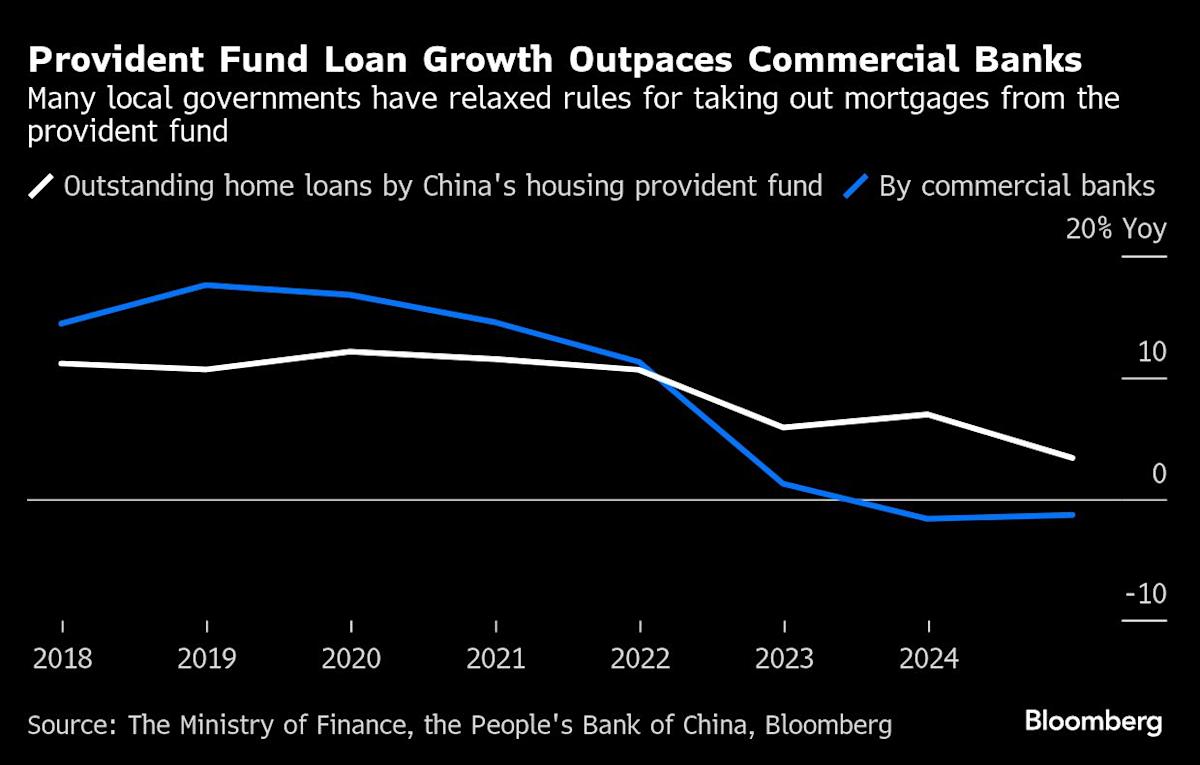 أصبح صندوق الإسكان Provident Fund ، وهو برنامج توفير حكومي يستخدم لمساعدة الأشخاص على شراء المنازل ، وسيلة متزايدة الأهمية للحصول على التمويل ، حيث تتحول البنوك إلى تحديات في الأرباح. تفوق الصندوق على البنوك في تقديم القروض ، حيث بلغ 8.1 تريليون يوان في القروض العقارية المتميزة العام الماضي.