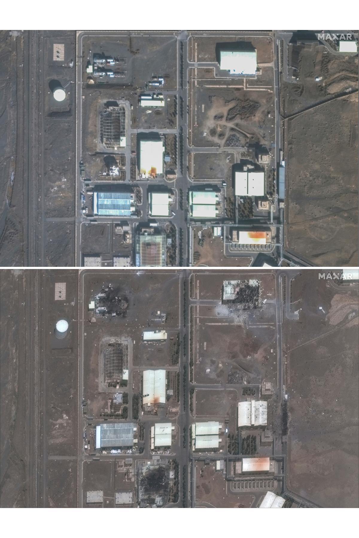 في مرفق التخصيب النووي لناتانز ، جنوب غرب طهران ، تُظهر الصور مباني متعددة إما تضررت أو دمرت ، بما في ذلك الخبراء الهياكل ، يقول خبراء الإمداد بالمرفق. تم التقاط صور ناتانز يومي الجمعة والسبت من قبل Maxar Technologies.