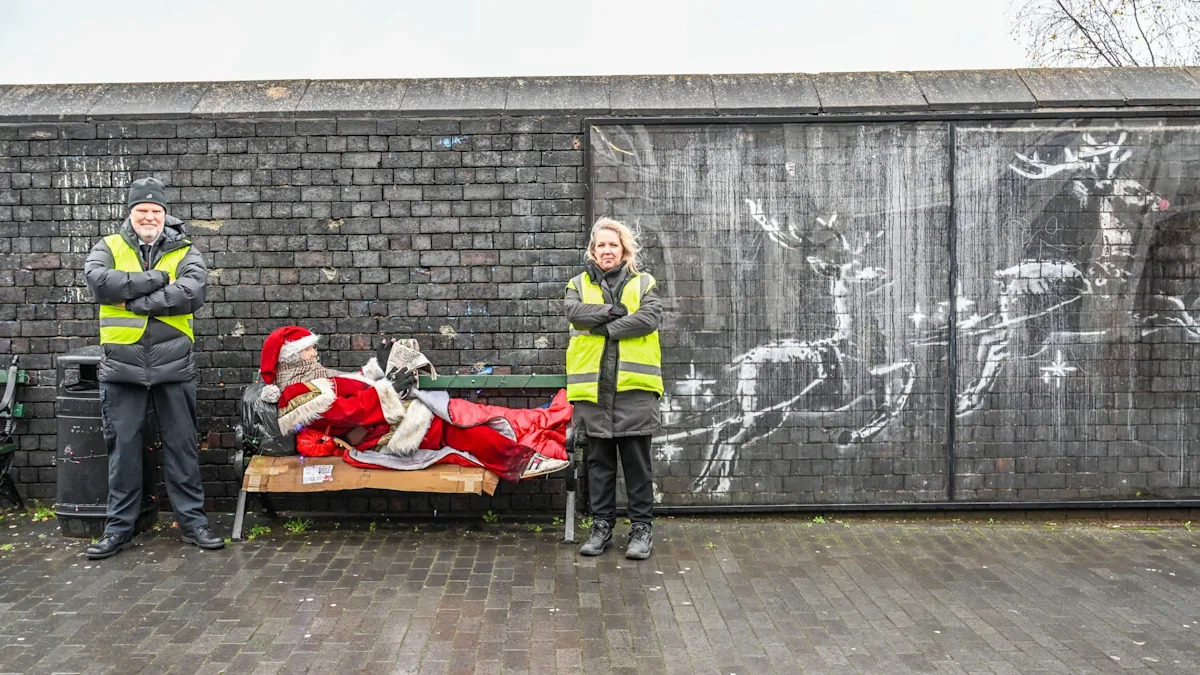 تمت إضافة سانتا إلى عمل بانكسي الفني لعام 2019. قام الفنان المراوغ برسم حيوان الرنة منذ عدة سنوات وقام بتصوير المشهد مع رجل بلا مأوى على المقعد في حي المجوهرات. واليوم يزعم أحد أفراد الجمهور أنه رأى رجلاً “يرتدي زي شرطي مرور” بالقرب من عمل للفنان الشهير في المدينة. والآن يجلس نموذج بابا نويل على مقعد يقرأ ورقة، وقد تم إعداده ليبدو مثل مزلقته.