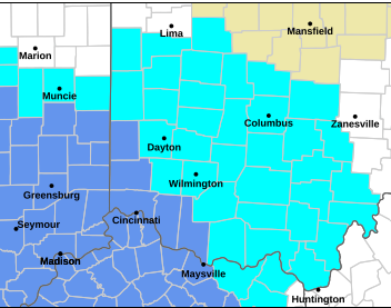 أصدرت هيئة الأرصاد الجوية الوطنية في ويلمنجتون تحذيرًا من التجمد في جميع أنحاء وسط أوهايو وأجزاء من ولايتي إنديانا وكنتاكي.