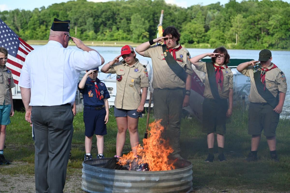 بعد الاحتفالات، قام الكشافة وطلاب الدوريات الجوية المدنية على حد سواء بتقديم أعلام غير صالحة للفحص والتخلص منها في حلقة حريق قريبة تم إعدادها لهذه المناسبة.