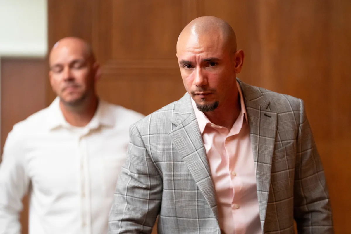 يعود فريدي بينا إلى قاعة المحكمة بعد استراحة أثناء المرافعات الختامية في محاكمة محاولة قتل بينا في محكمة مقاطعة بيرغن في هاكنساك يوم الثلاثاء 7 أكتوبر 2025. واتُهم بينا بطعن رجل في فورت لي في 5 أغسطس 2023.