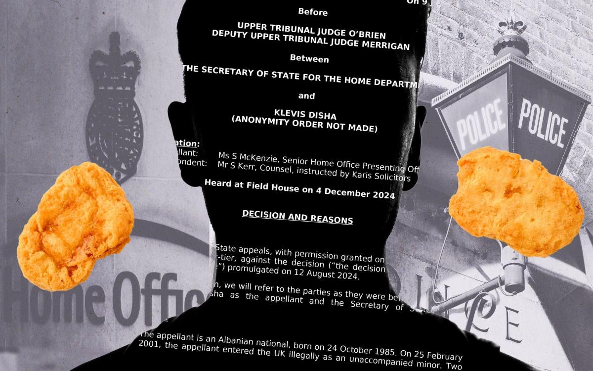 سُمح لمجرم ألباني بالبقاء في بريطانيا جزئياً لأن ابنه لن يأكل شذرات الدجاج الأجنبية ، يمكن أن تكشف التلغراف.